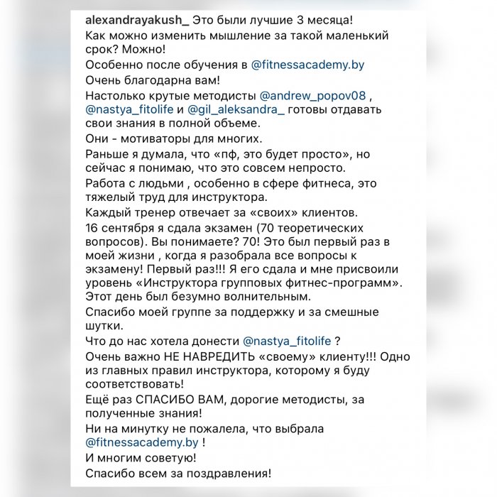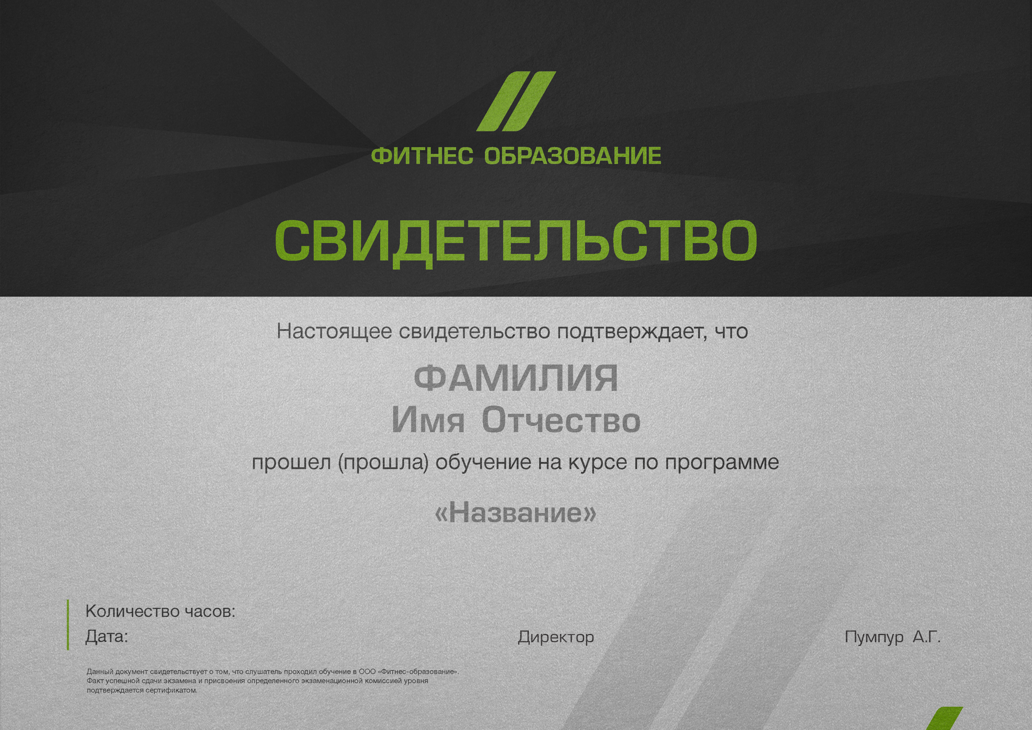 - Идентификационный номер в реестре выпускников УЦ «Фитнес-образование».