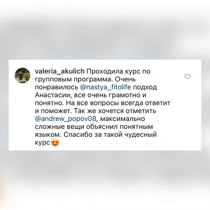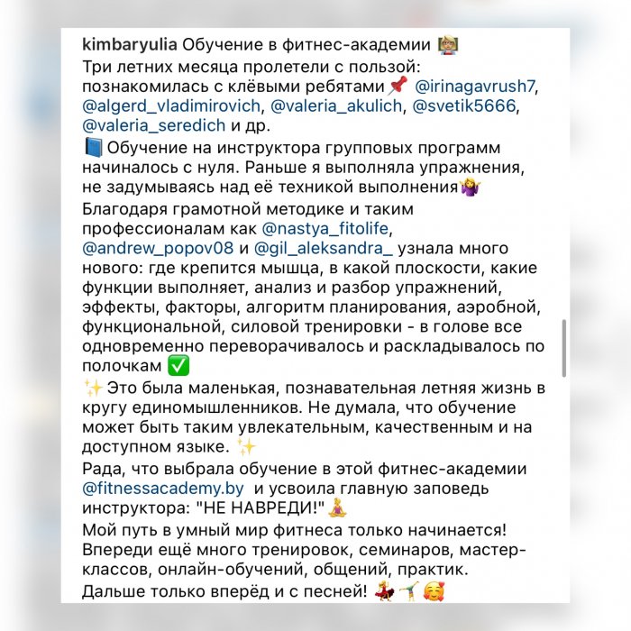 Мы ориентированы на то, чтобы вы действительно научились, а не просто прошли обучение. Каждый обучающийся пробует себя в роли инструктора во время практических занятий по перечисленным выше фитнес-направлениям.