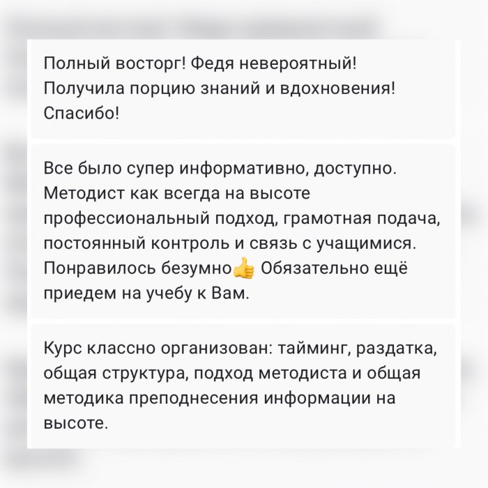 Методические материалы (иллюстрированные авторские пособия) входят в стоимость обучения.