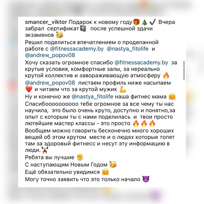 - Идентификационный номер в реестре выпускников УЦ «Фитнес-образование».