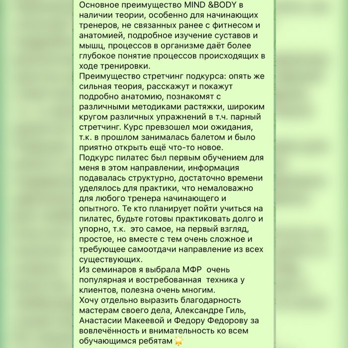 - Сертификат инструктора MIND&BODY